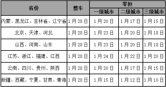 以下是我司合作物流初步制定的春節(jié)前物流停運(yùn)時(shí)間,敬請(qǐng)各位老總提前預(yù)備常規(guī)產(chǎn)品。